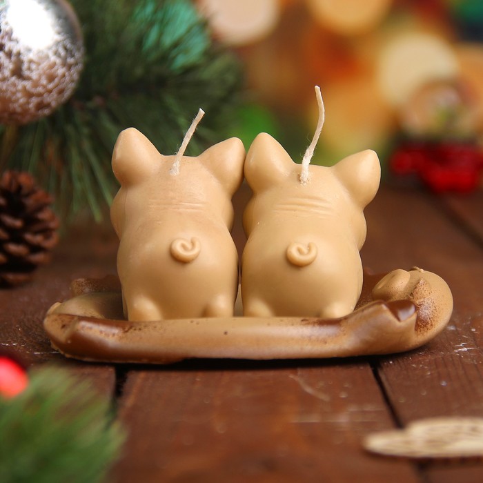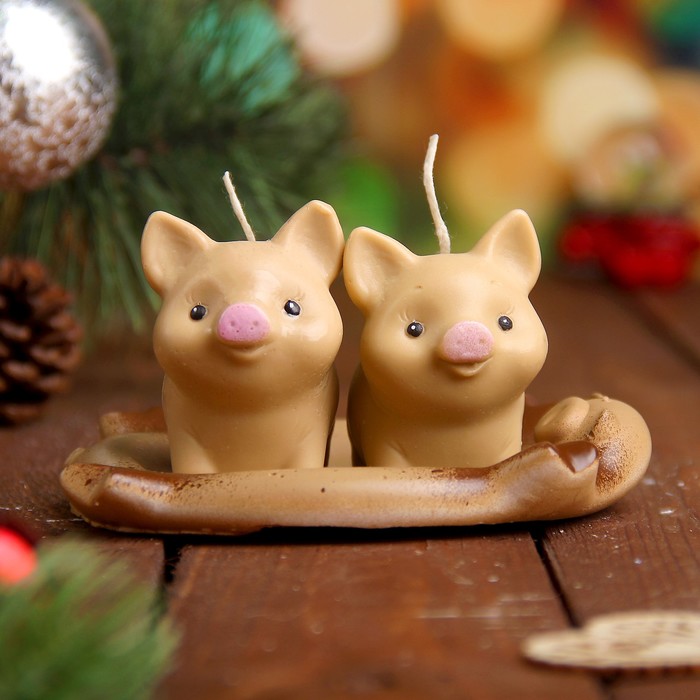 Набор свечей "Три поросёнка" бежевый, 7х11см