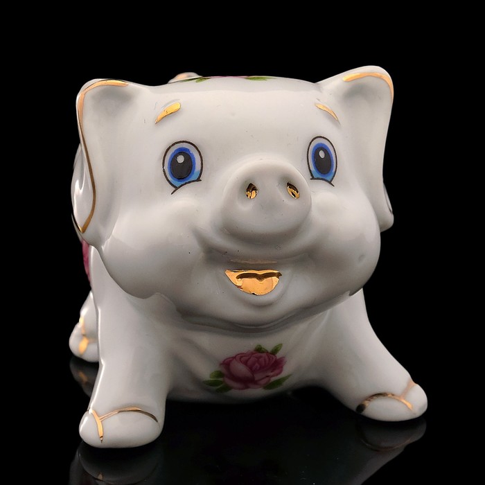 Набор «Свинка Цветочек», 2 шт: 8×5×7,5 см, белый с золотом, фарфор
