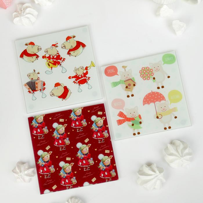 Набор тарелок подстановочных "Хрюшки" 15*15 см 3 шт в подар упак