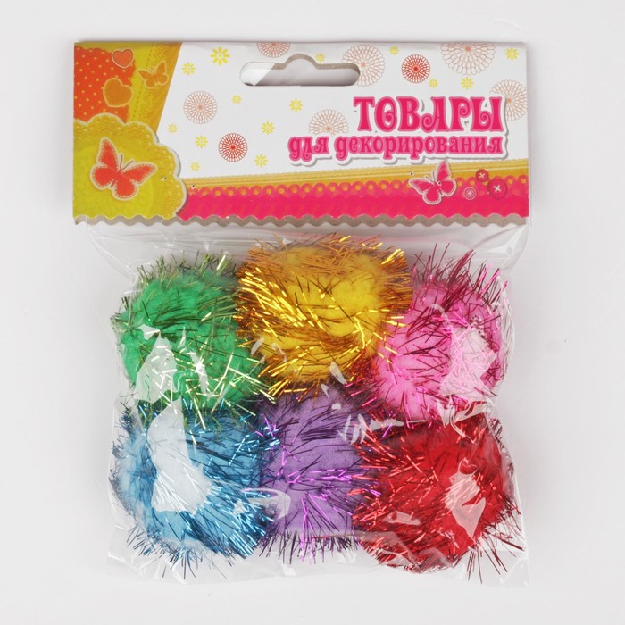 Набор текстильных деталей для декора "Бомбошки" 6 шт набор, размер 1 шт 4 см, цвет МИКС