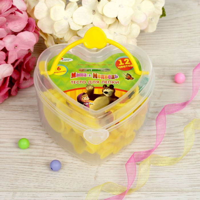 С помощью формочек и стеки можно сделать разнообразные фигуры и узоры, а 12 ярких цветов позволят потренироваться в смешивании новых оттенков. Удобный сундучок с Машей и Медведем пригодится для хранения набора и убережёт материал от высыхания.