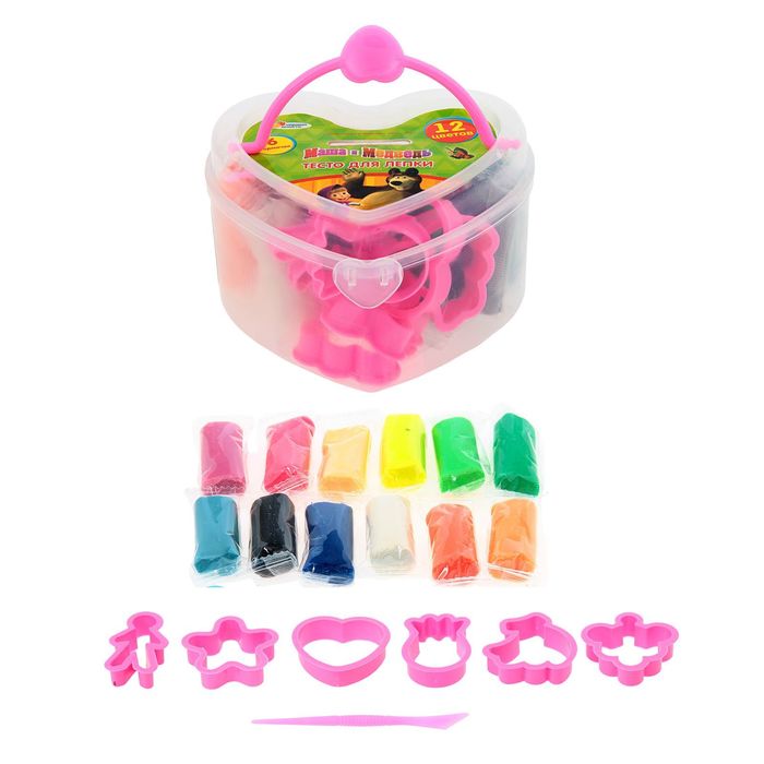 Набор теста для лепки "Маша и Медведь": 12 цветов, 175 г + 6 формочек, МИКС