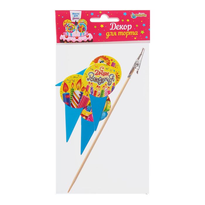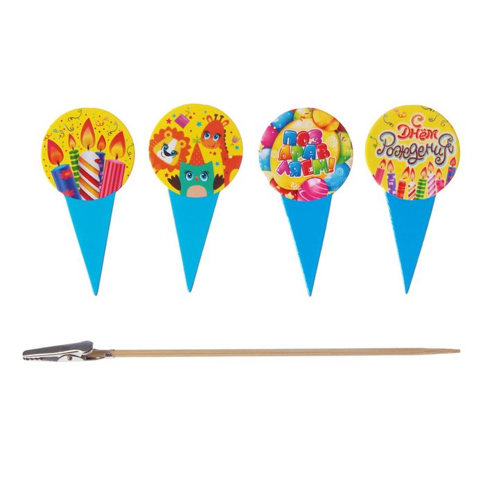 Набор топперов для торта "С Днём Рождения", 4 шпажки + держатель для фото