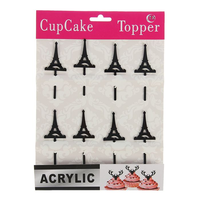 Набор топперов на пирожное "Башня" 8 шт, цвет черный