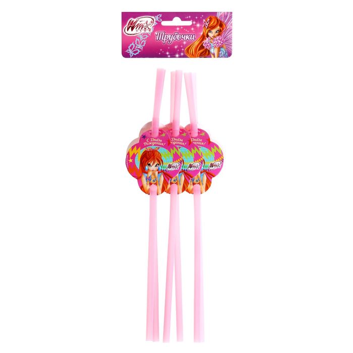Набор трубочек для коктейля "С Днем рождения" (6 шт), феи Винкс, Блум