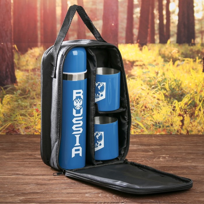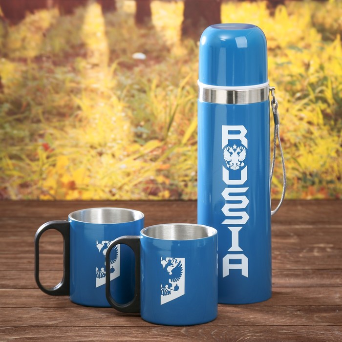 Набор туристический "Russia", термос 500 мл, кружка 2 шт