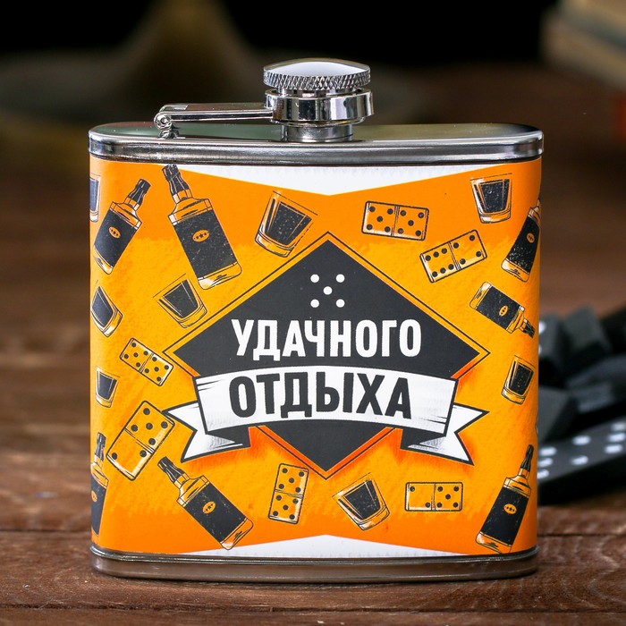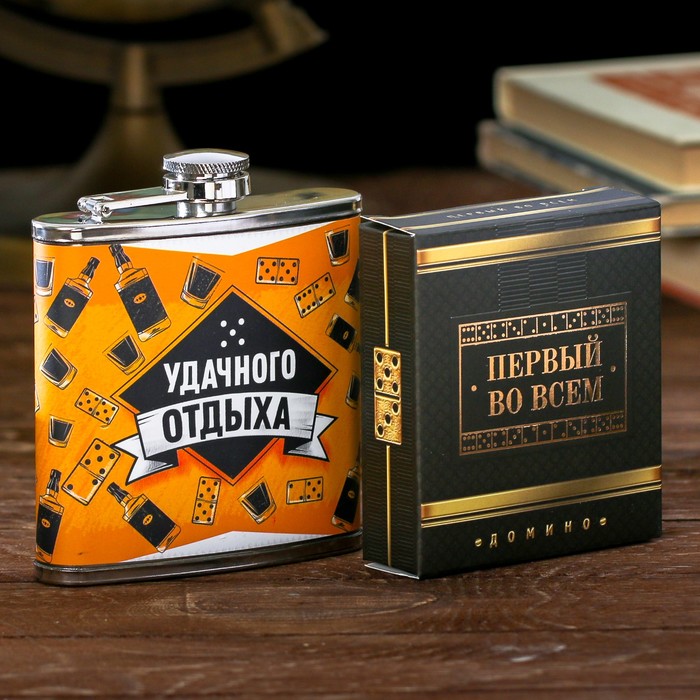 Набор "Удачного отдыха", фляжка 180 мл, домино