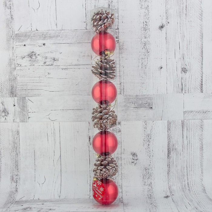 Набор украшений пластик 6 см 8 шт "Шишка" красный