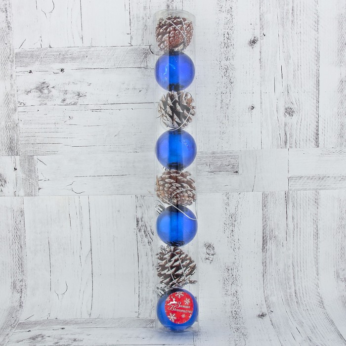 Набор украшений пластик 6 см 8 шт "Шишка" синий