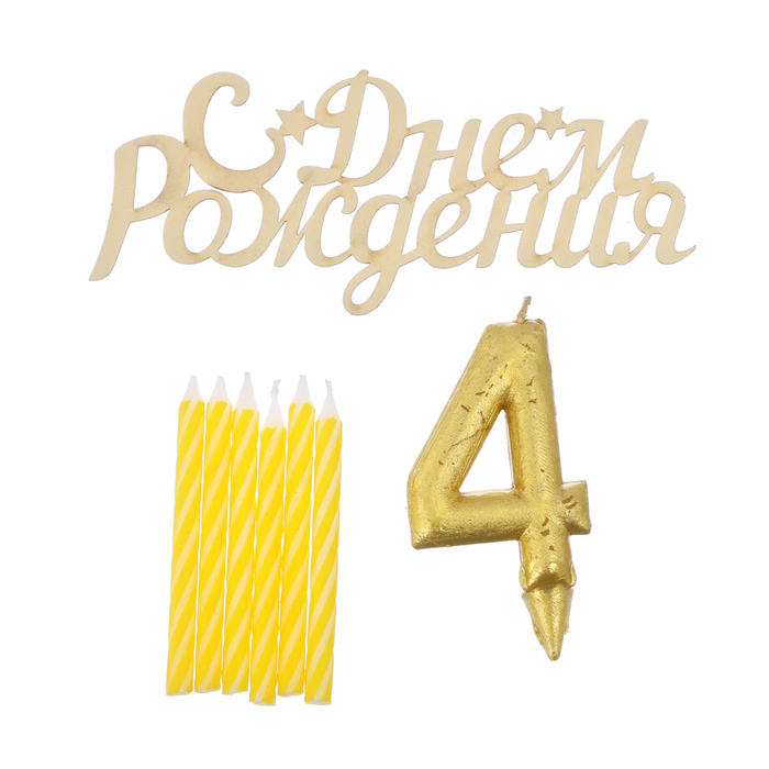 Набор в торт цифра 4 + топпер + 6 свечей "С днем рождения"