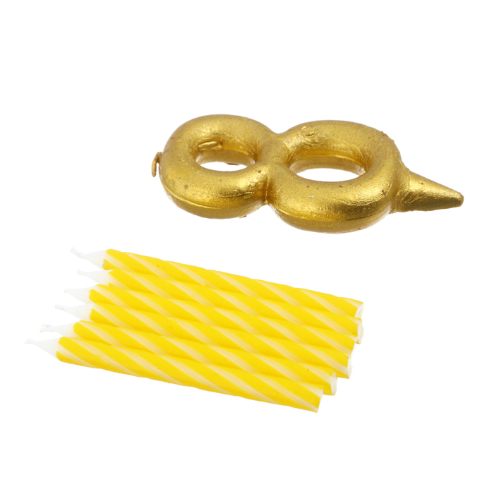 Набор в торт цифра 8 + топпер + 6 свечей "С днем рождения" — непременный атрибут праздника, который бывает раз в году! Он обязательно поднимет настроение виновнику торжества.