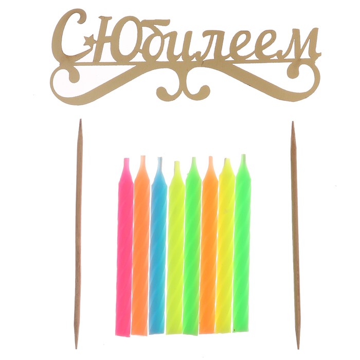 Набор в торт "С юбилеем" топпер + 8 свечей — непременный атрибут праздника, который бывает раз в году! Он обязательно поднимет настроение виновнику торжества.