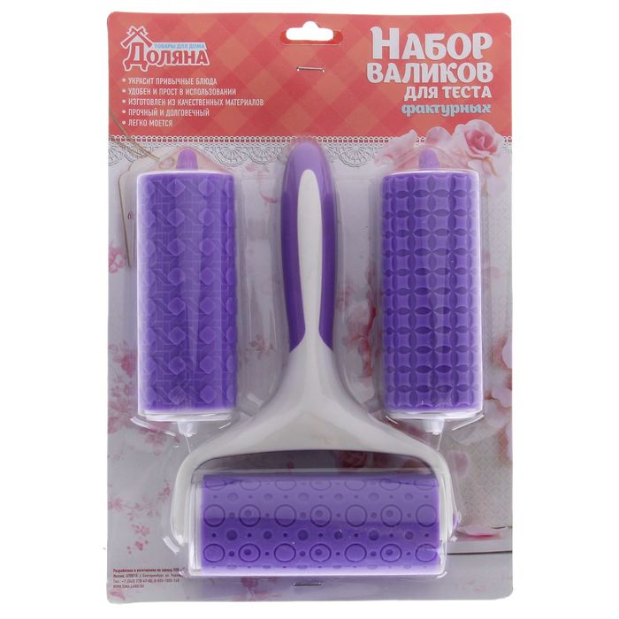 Набор валиков для накатки теста 3 шт фактурный 20х12х4 см,