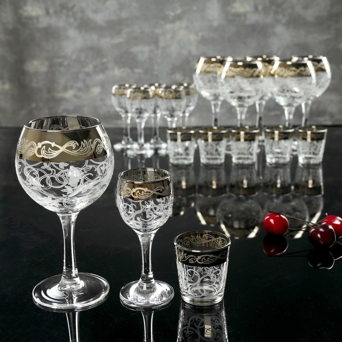 Набор "Вдохновение", 18 предметов: 6 фужеров 290 мл, 6 рюмок 60 мл, 6 стопок: 50 мл