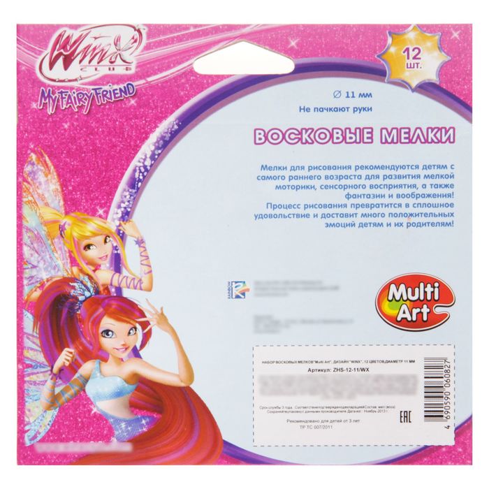 Набор восковых мелков Winx, 12 цветов, d=11 мм