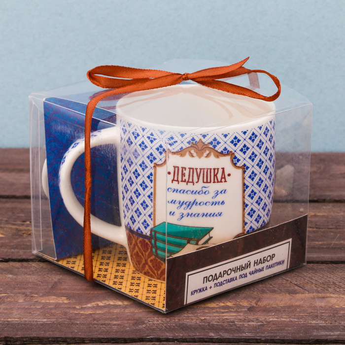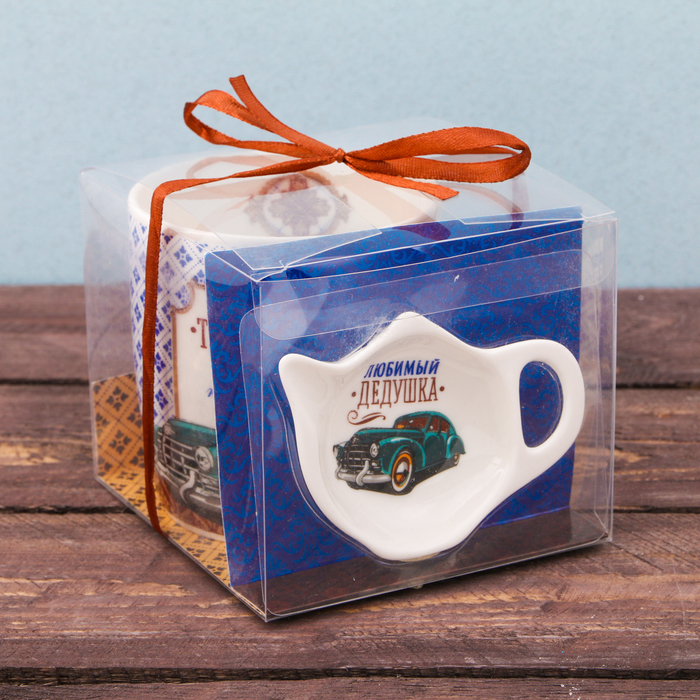 Набор"Любимый дедушка" кружка 300 мл, подставка под чайный пакетик