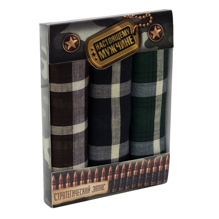 Наборы носовых платков "Этель" Настоящему мужчине 36х36 см - 3 шт, хлопок