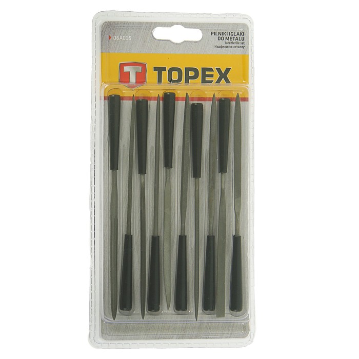 Надфили TOPEX, набор 10 шт., 140 мм, d = 3 мм, для точного шлифования металла, с ручкой