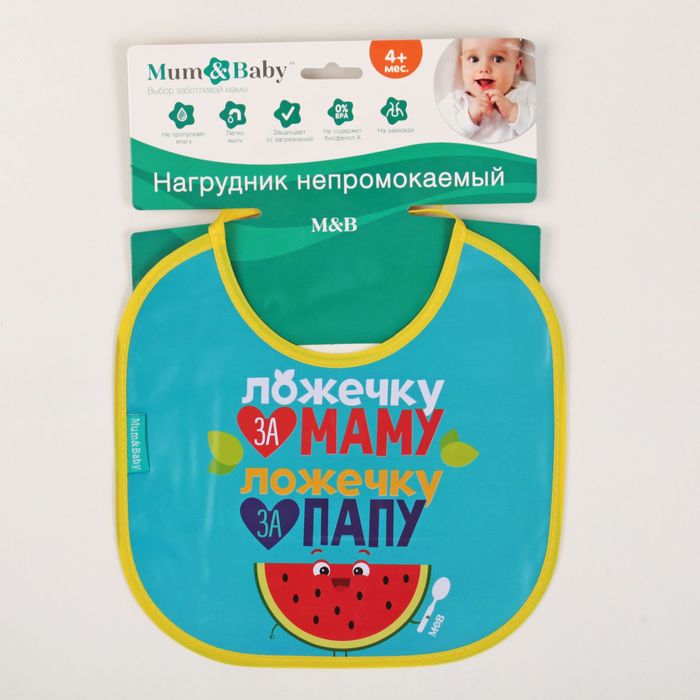 Нагрудник непромокаемый «За маму, за папу», на завязках