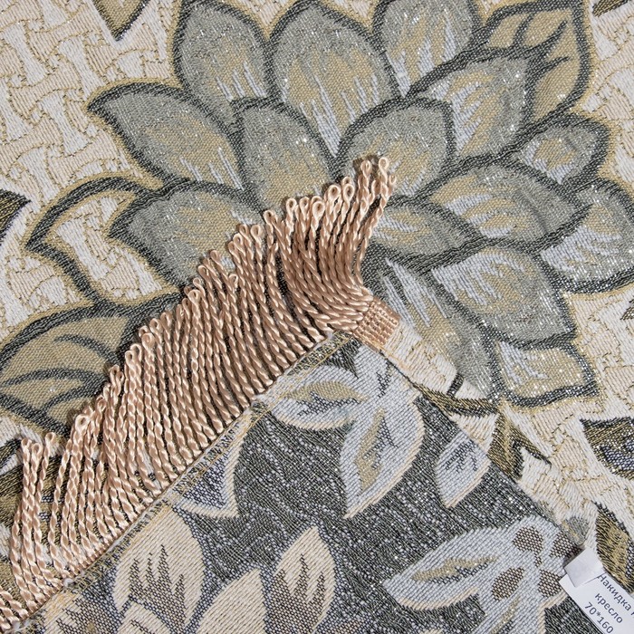 Накидка на кресло "Этель" Роскошь серебряный 70х160 см с бахромой