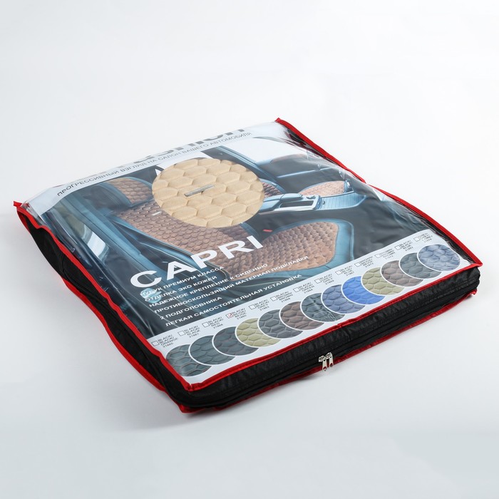 Не секрет, что машина давно уже перестала восприниматься как просто средство передвижения, и водители покупают всё лучшее для своих железных коней. Накидки на передние сиденья CAPRI, экокожа, черно-бежевый, набор 2 шт. — идеальный выбор, если вы ставите целью и улучшение технических характеристик, и поддержание внешнего вида автомобиля.