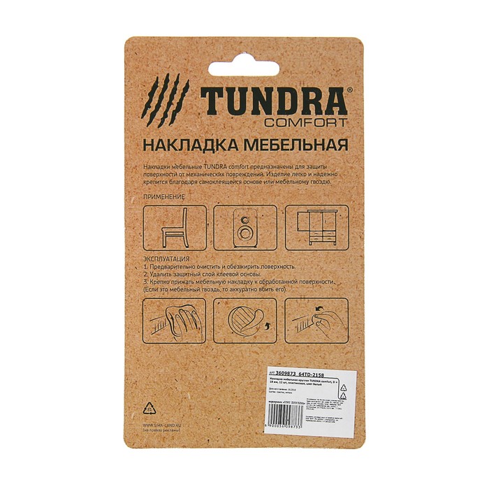 Накладка мебельная круглая TUNDRA comfort, D = 18 мм, 12 шт, пластиковая, цвет белый