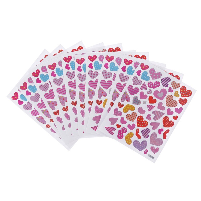 Наклейка бумага "Сердечки" (набор 10 шт) 12,5х9,5 см
