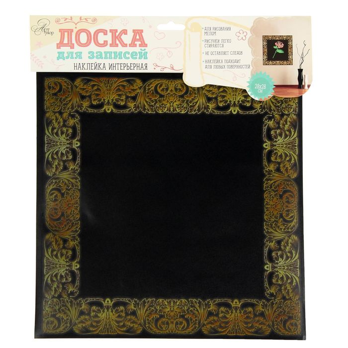 Наклейка для рисования мелом «Багет», 30 х 40 см очень проста в использовании. Прикрепите её на стену, шкаф или другую ровную поверхность, и площадка для творчества готова! Рисунки легко стираются сухой или влажной тряпочкой, при отклеивании от стены этот элемент декора не оставляет следов.