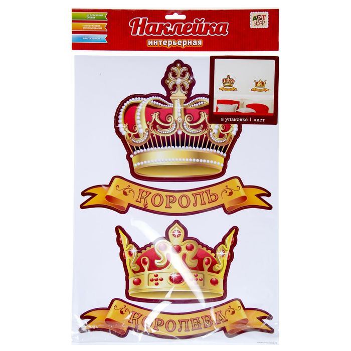 Наклейка интерьерная "Король и Королева" – лучший способ, не прибегая к дорогостоящему ремонту, украсить свой интерьер. Легким движением руки вы придадите ему индивидуальность и свой, неповторимый стиль. Разместите наклейки над кроватью или в любое место, куда подскажет воображение. Спальня заиграет новыми красками, а ваша вторая половинка будет чрезвычайно рада столь оригинальному преобразованию.