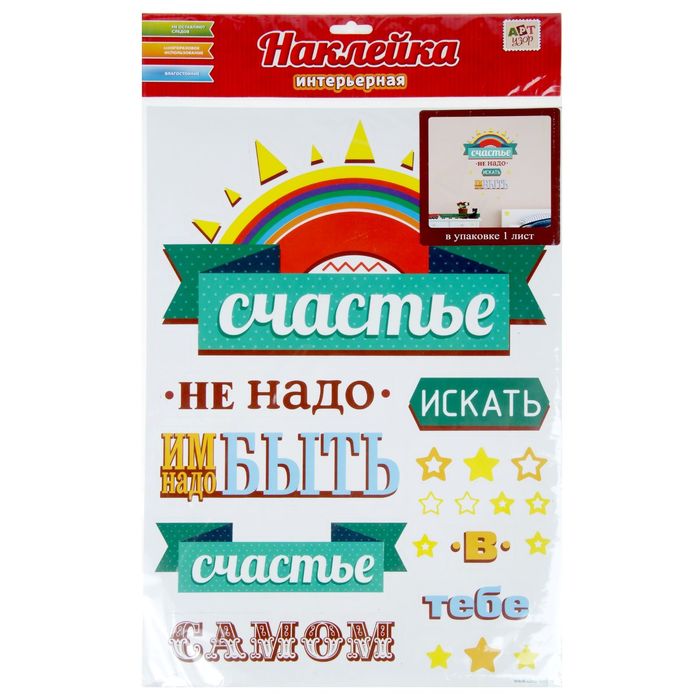 Наклейка интерьерная "Счастье" – лучший способ, не прибегая к дорогостоящему ремонту, украсить свой интерьер. Легким движением руки вы придадите ему индивидуальность и свой, неповторимый стиль. Размещайте наклейки где угодно: на стены, мебель, зеркала, потолок, холодильник и другую бытовую технику – в любое место, куда подскажет воображение. Квартира заиграет новыми красками, а домочадцы будут чрезвычайно рады столь оригинальному преобразованию.