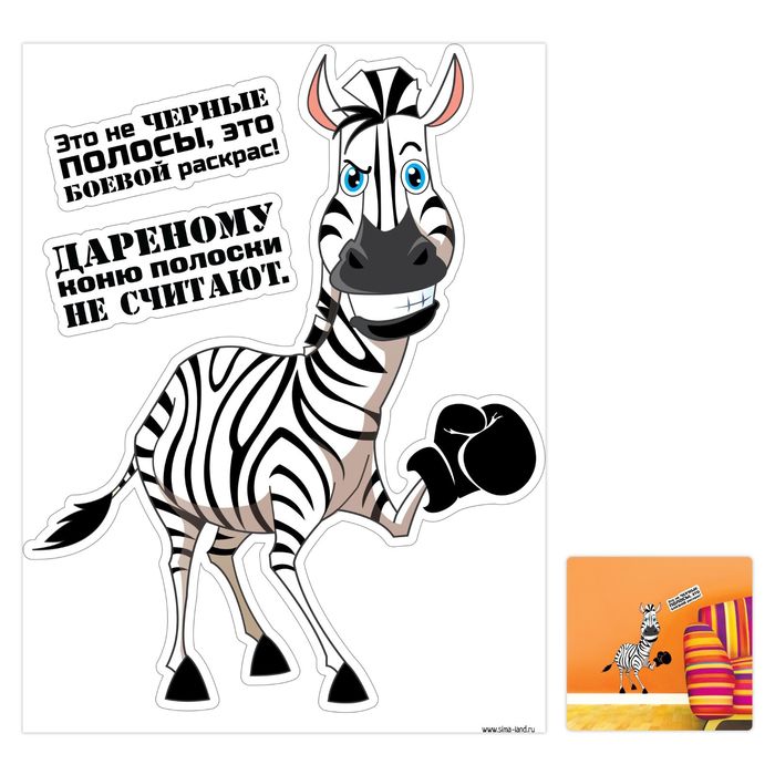 Наклейка интерьерная "Зебра" – лучший способ, не прибегая к дорогостоящему ремонту, украсить свой интерьер. Легким движением руки вы придадите ему индивидуальность и свой, неповторимый стиль. Размещайте наклейки где угодно: на стены, мебель, зеркала, потолок, холодильник и другую бытовую технику – в любое место, куда подскажет воображение. Квартира заиграет новыми красками, а домочадцы будут чрезвычайно рады столь оригинальному преобразованию. Яркие изображения будут вызывать улыбку, поднимать настроение и наверняка сделают вашу жизнь лучше!