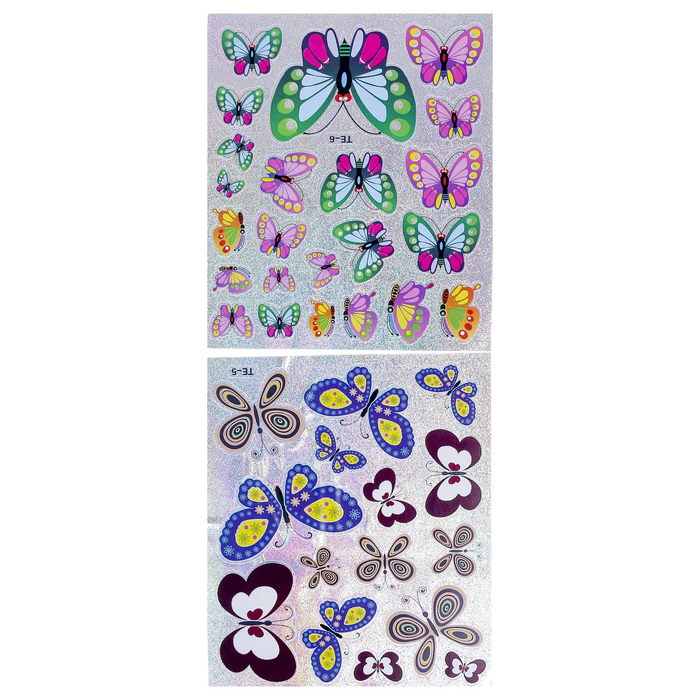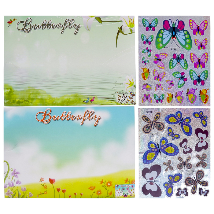 Наклейка картон 2 листа, пластик 2 листа "Бабочки" (набор 4 детали) 30х20 см