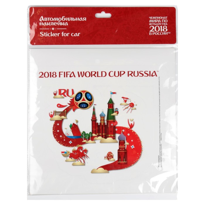 Не секрет, что машина давно уже перестала восприниматься как просто средство передвижения, и водители покупают всё лучшее для своих железных коней. Наклейка на автомобиль с логотипом России 2018 FIFA World Cup Russia™, 26 х 22 см — идеальный выбор, если вы ставите целью и улучшение технических характеристик, и поддержание внешнего вида автомобиля.
