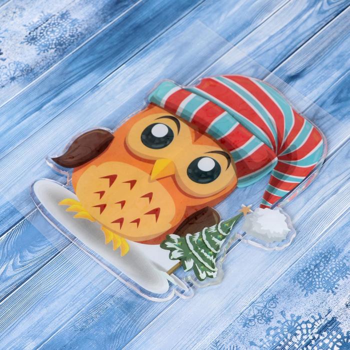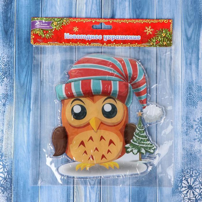 Наклейка на стекло 16*17,5 см совенок с елкой