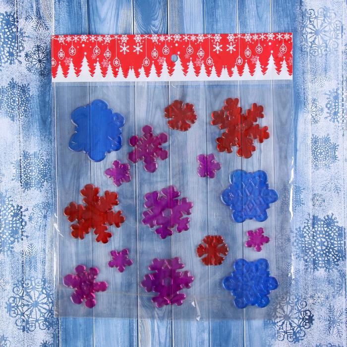 Наклейка на стекло "Снежинки ассорти" 24*24 см, набор 15 шт