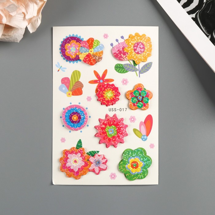 Наклейка пластик "Бабочки/Цветы" МИКС 19х10 см