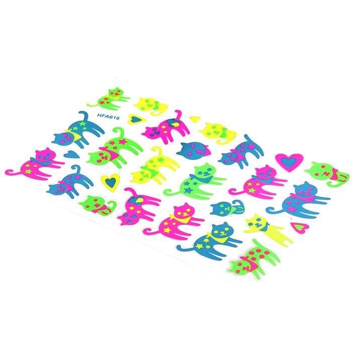 Наклейка пластик фосфорная с блестками "Слонята и котята" МИКС 23,5х11,5 см