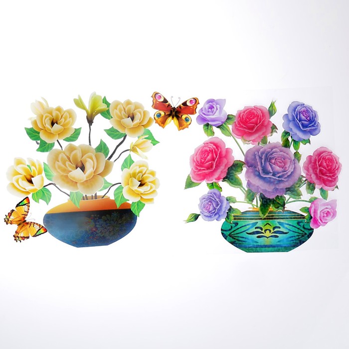 Наклейка пластик интерьерная "Цветы в вазочках" 35х50 см