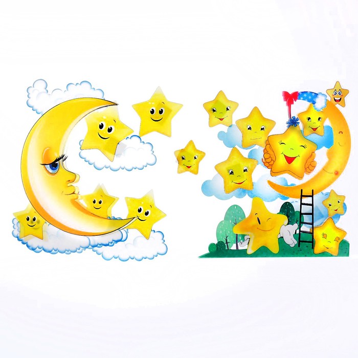 Наклейка пластик интерьерная "Месяц и звёздочки" 35х50 см