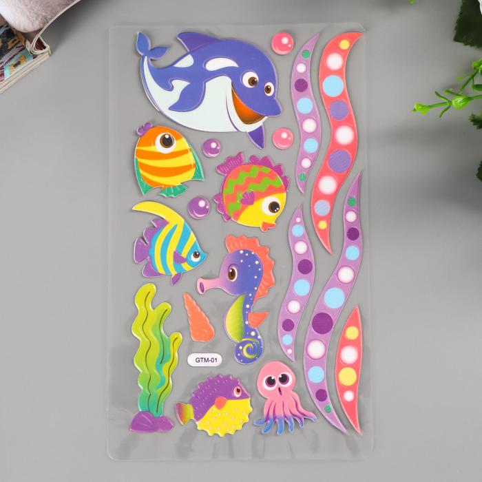 Наклейка пластик с золотом "Транспорт/Рыбки" МИКС 23,5х12,5 см