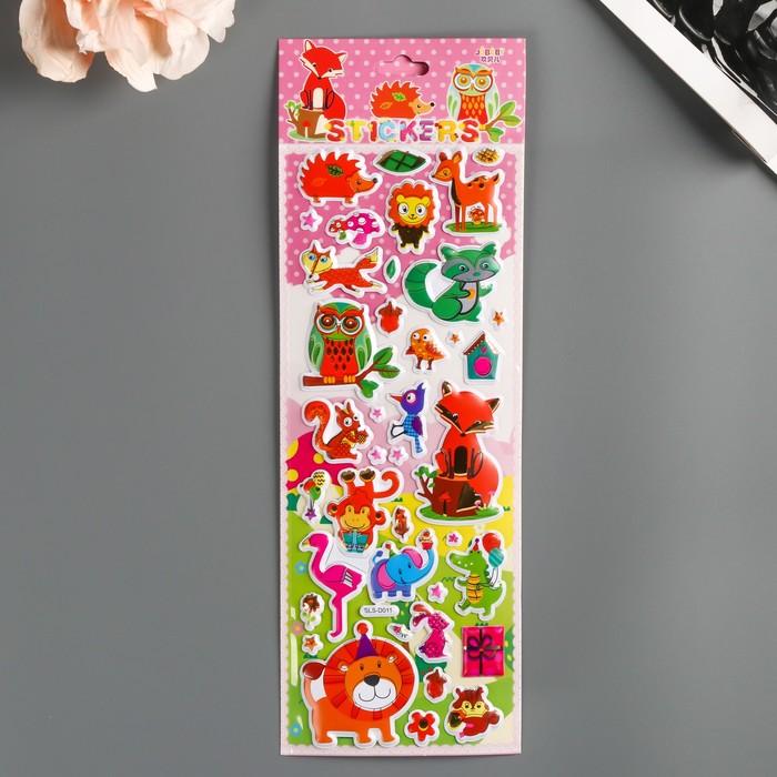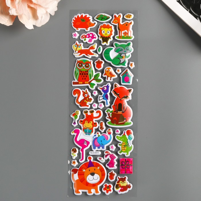Наклейка пластик с золотом "Звери и птицы" МИКС 31,5х13,5 см