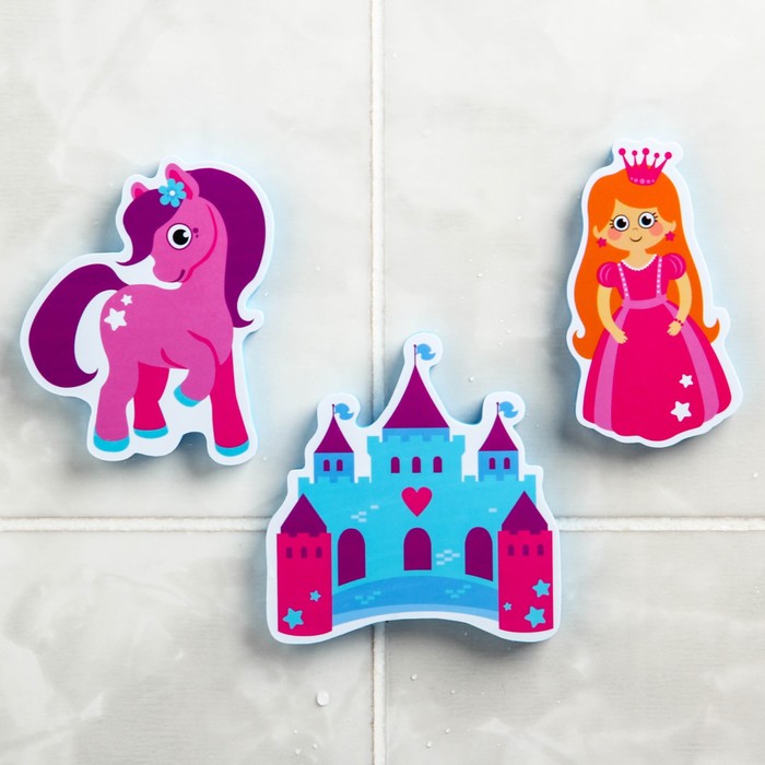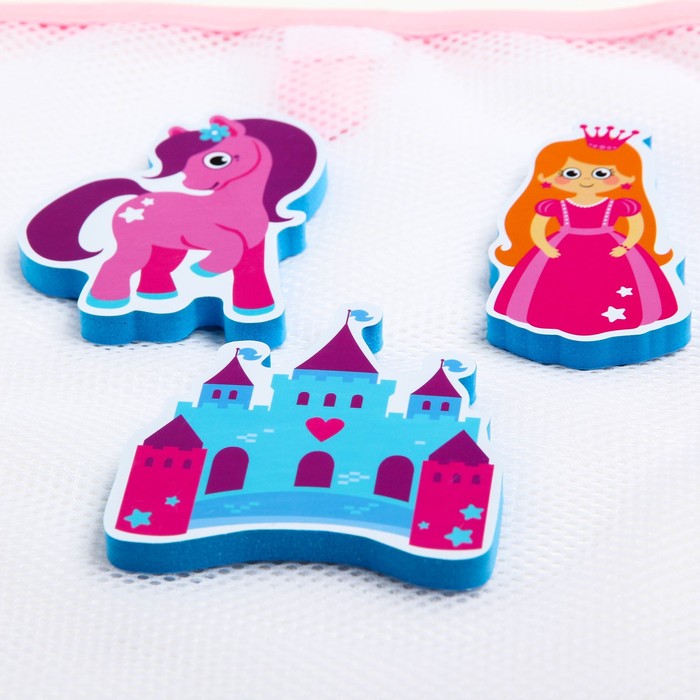 Наклейки в ванную из EVA «Принцесса» + сетка для хранения игрушек на присосках