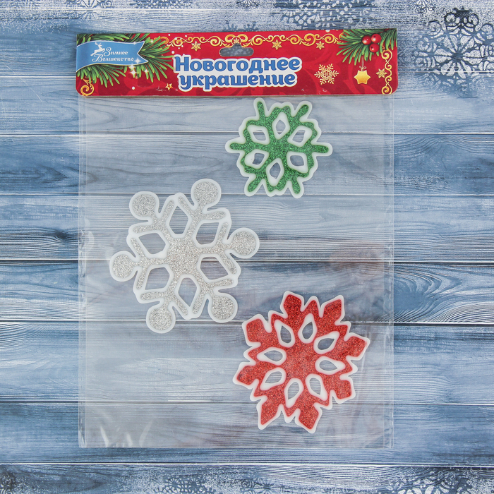 Налейка на стекло "Снежинки" 9,5 см, 9 см, 6,5 см, красный, зелёный, серебро