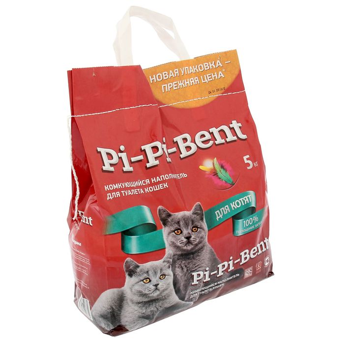 Наполнитель минеральный комкующийся "Pi-Pi-Bent" для котят, п/э пакет, 5кг
