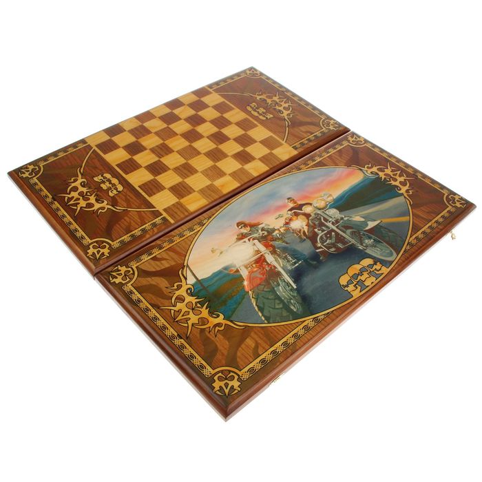 Нарды-шашки "Байкеры" (доска дерево 60х60 см)