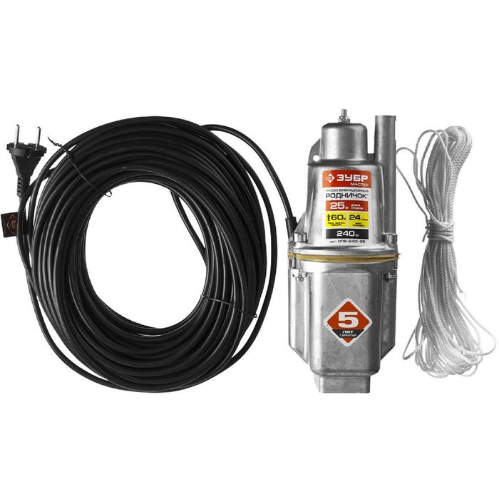 Насос "ЗУБР" НПВ-240-25, вибрационный, шнур 25м, 240Вт, 24л/мин, напор 60м, погружной
