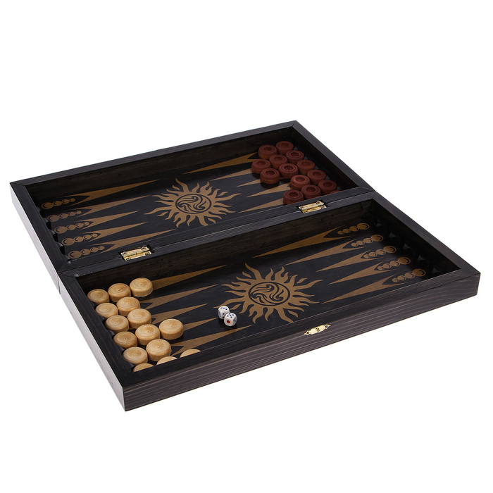 Настольная игра 3 в 1 "Черное золото": шашки, нарды, шахматы (доска дерево 40х40 см)