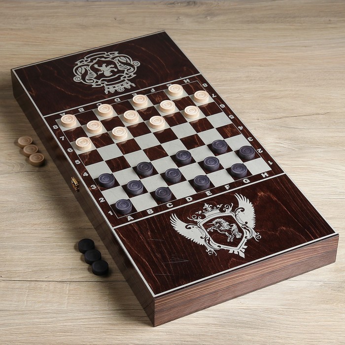 Настольная игра 3 в 1 "Рыцари в золоте": нарды, шахматы, шашки (доска дерево 60х60 см)