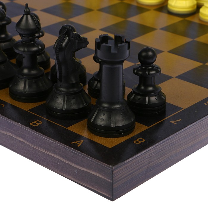 Настольная игра 4 в 1 "Черное золото": шашки, нарды, домино, шахматы (доска дерево 40х40 см)