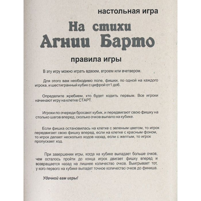 Невозможно представить нашу жизнь без праздников! Мы всегда ждём их и предвкушаем, обдумываем, как проведём памятный день, тщательно выбираем подарки и аксессуары, ведь именно они создают и поддерживают торжественный настрой. Настольная игра «На стихи Агнии Барто» — это отличный выбор, который привнесёт атмосферу праздника в ваш дом!